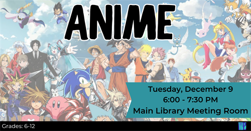 Meet other fans of anime and manga, watch anime, and eat ramen on the 2nd Tuesday of each month.
